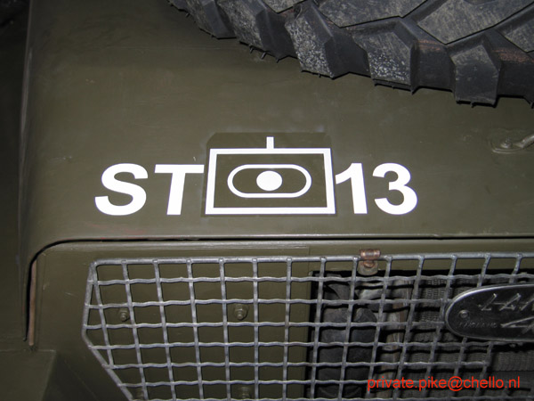 Dat de auto legergroen zou blijven stond vanaf het idee van het kopen vast. Met veel plezier denk ik af en toe terug aan mijn parate tijd in militaire dienst. Een herinnering aan het Korps Rijdende Artillerie en dus mijn diensttijd en de diensplicht in het algemeen gaven het besluit om Sheila de "Staf 01" van 13 AFDRA te maken. Deze afdeling was tussen 1980 en 2003 het mobilisabele deel van het Korps Rijdende Artillerie.
